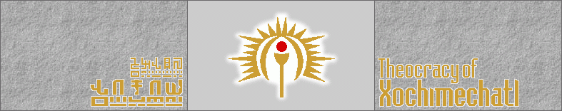 Welcome to the official website of the Theocracy of Xochimechatl. Xochimechatl is an island located in the western reaches of the Cislendian Ocean, to the west of the UPRMI and to the east of Melania. It is, as its official name suggests, a nation administered by religious authorities, based around beliefs and traditions unique to the island. There are three distinct peoples inhabiting Xochimechatl - the majority Couatlans, and the minority Chitec and Irominans.The Name of Our Nation
